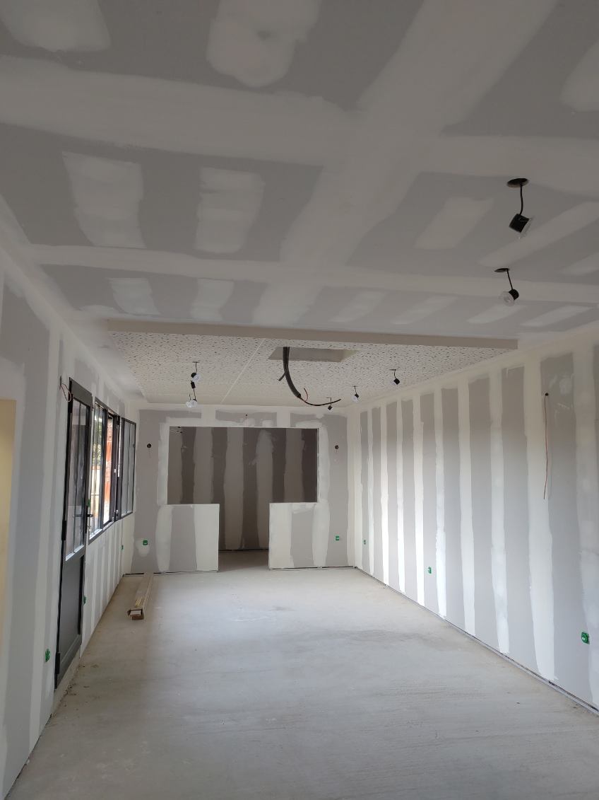Cuisine d’été et salle de cinéma avec plafond acoustique sur mesure Après Avant Informations sur la réalisation : Cuisine d’été et salle de cinéma avec plafond acoustique sur mesureTravaux réalisés : Plâtrerie / IsolationVille : Demander un devis